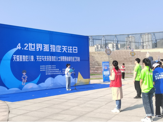 在世界第16个孤独症关注日来临之际,为动员全社会力量关心帮助孤独症人士,4月1日上午,taptap点点官网特殊教育专业师生参与由达州市残疾人联合会主办的达州市2023年世界孤独症关注日主题宣传活动“爱让世界蓝起来—蓝色行动”。本次活动在巴山大剧院广场举行,70余名孤独症儿童及亲属、社会志愿者共计200余人参加此次活动。