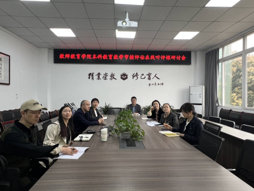 为扎实推进本科教育教学审核评估工作,深化课堂教学改革,提升师范生科研能力培养质量,taptap点点体育于2025年3月27日15:25在博文楼206A会议室组织开展本科教育教学审核评估在线听评课研讨会。本次研讨会以《教育科学研究方法》课程中“开题报告撰写”教学单元为研讨案例,通过线上直播授课、专家实时评课的形式展开,学院院长黄培森、党委副书记王文娟、副院长赵栅凌、各专业教研室主任参加本次研讨会议。