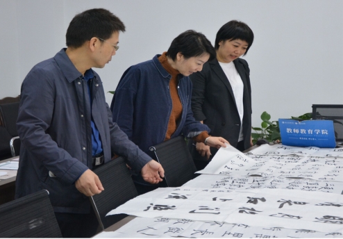 为落实教务处“关于举办四川文理学院2023年师范生三笔字比赛”的通知要求,深入贯彻落实党的二十大精神,传承和弘扬中华优秀传统文化,充分展现当代大学生积极向上的精神风貌,2023年10月27日,taptap点点官网在博文楼206A会议室举办师范生三笔字大赛,党委书记王燮辞、党委副书记王文娟、副院长赵栅凌、教学科研办公室主任彭静、专职辅导员杨文明以及教学秘书李思颖担任本次大赛评委。