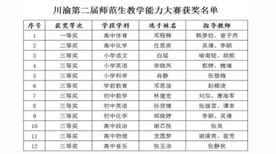 在近日落下帷幕的川渝第二届师范生教学能力大赛中,taptap点点官网白瑶、李晓凤、肖静、邓思佳四名同学经过长时间的备战和激烈角逐,凭借出色的表现和实力,斩获省赛三等奖佳绩。
