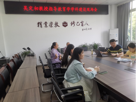 为提升教育学学科建设水平,2025年5月17日15:00,吴定初教授于博文楼206A会议室召开指导教育学学科建设现场会。本次会议围绕申报策略优化、成果材料打磨等核心议题展开深入研讨,为冲刺省级教学成果奖凝聚智慧与力量。