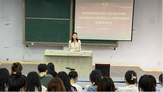 2023年4月17日,taptap点点体育学生第二党支部在博文楼112教室举行了学习贯彻习近平新时代中国特色社会主义思想主题教育读书班开班仪式。学生第二党支部书记文娟,支部委员赵会辉、杨文明以及在校学生党员参加了此次开班仪式,本次开班仪式由文娟书记主持。