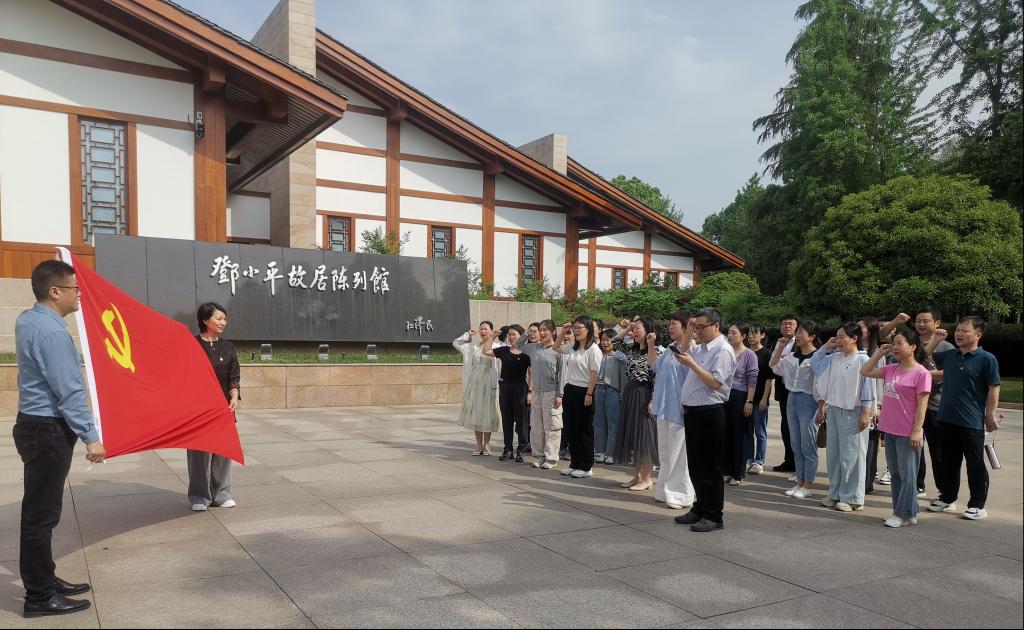 邓小平作为改革开放的总设计师,为中国社会主义现代化建设指明了方向,并引领全国各族人民走上了富裕之路。党员同志们来到邓小平铜像广场,怀着崇敬的心情,整齐列队,向邓小平同志铜像致敬。在邓小平故居陈列馆广场,全体党员同志面向党旗,重温入党誓词,铿锵有力的誓言彰显出新时代党员干部坚守初心、勇担使命的坚定信心。